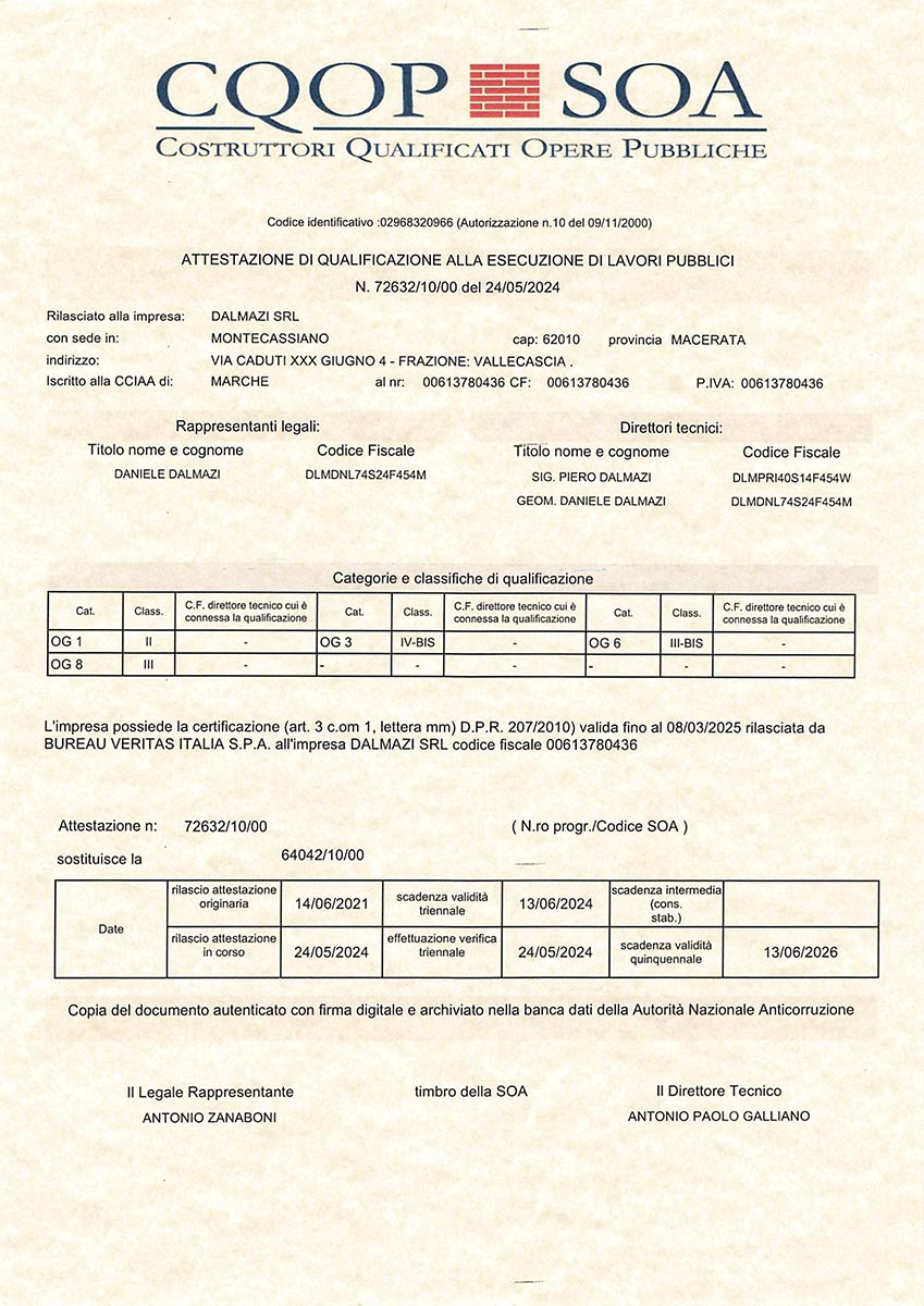 Dalmazi Srl opera dal 1980, con un’esperienza costruita su cantieri e opere sul territorio.